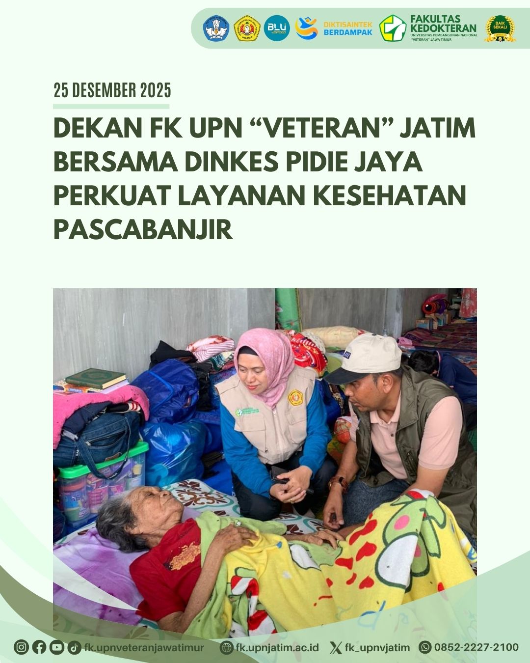 Sementara itu, Prof. Rika menyampaikan bahwa keterlibatan Fakultas Kedokteran UPN “Veteran” Jawa Timur merupakan bagian dari pengabdian institusi pendidikan kedokteran dalam situasi kebencanaan. Kolaborasi dengan Dinas Kesehatan Pidie Jaya dinilai penting untuk memastikan pelayanan kesehatan berjalan optimal dan sesuai kebutuhan di lapangan.