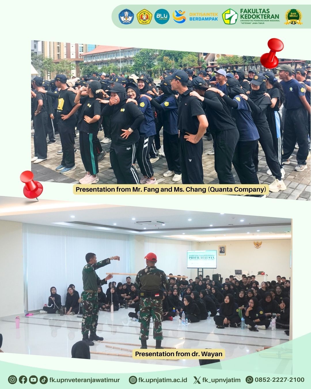 Fakultas Kedokteran UPN ”Veteran” Jawa Timur menyelenggarakan kegiatan ”Pembentukan Dan Pemantapan Profil Lulusan FK UPNVJT” pada Sabtu-Minggu, 8-9 November 2025. Kegiatan ini diikuti oleh seluruh mahasiswa. Kegiatan ini merupakan bentuk FK UPNVJT dalam penguatan dan peningkatan pemahaman mengenai profil lulusan, salah satunya adalah Bela Negara.